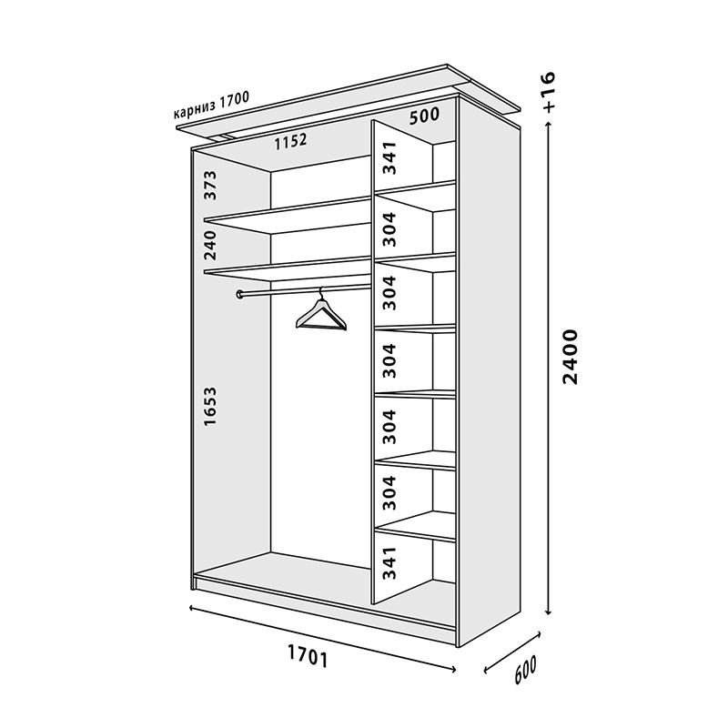 •  труба-скалка хром, при глибині шафи на 600 мм.