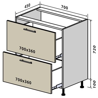 Глибина верхніх ящиків – 280 мм Глибина нижніх ящиків – 450 мм |