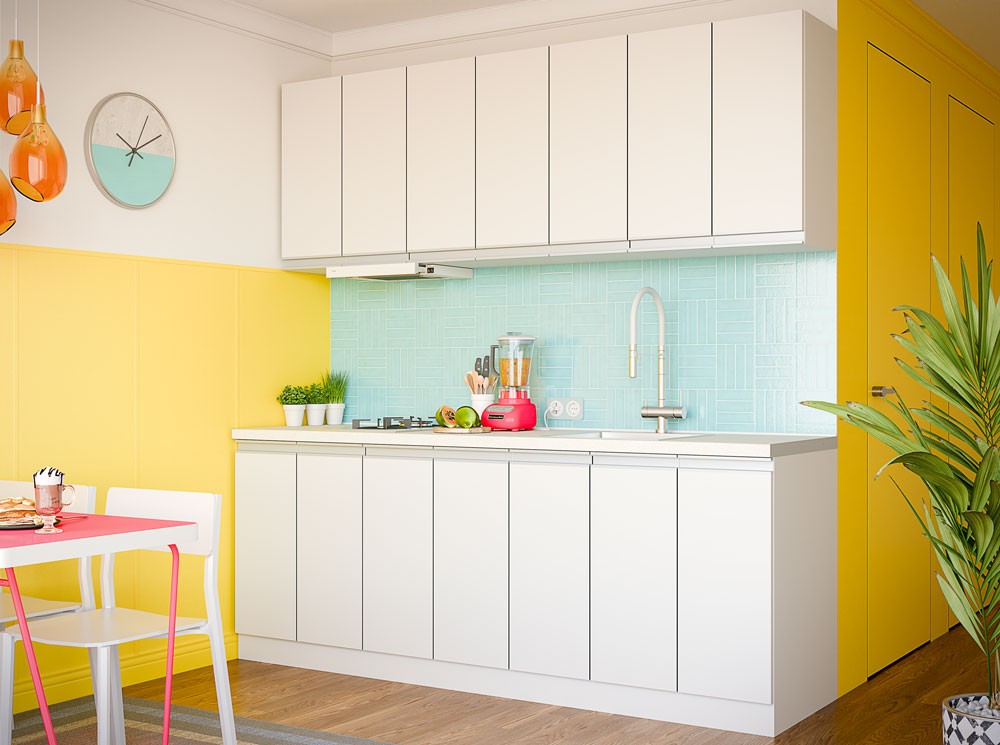 Верхні та нижні модулі кухні можуть бути однотонними, під бетон або імітувати дерево (6 кольорів на вибір) — остаточне рішення залежить від ваших особистих уподобань та стильових особливостей приміщення.