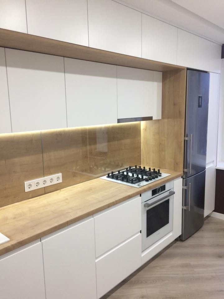 Відсутність виступаючої фурнітури – це більша надійність та функціональність виробу. Суть інтегрованих ручок в тому, що у площині фасаду фрезерується паз, який грає роль звичайної ручки. Функціональність такого елемента – абсолютно не гірше накладних моделей. Вигляд монолітної конструкції фасаду та ручки – ідеально організовує простір сучасного стилю кухонь.