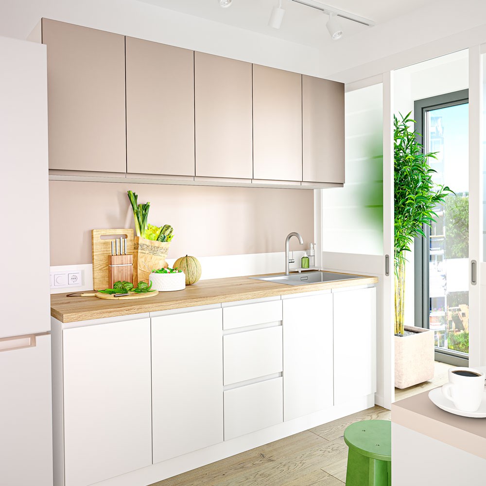Завдяки горизонту ліній, фасади «Integral», навіть у невеликій кухні візуально розширюють простір, надають відчуття рівноваги, спокою та стилю.