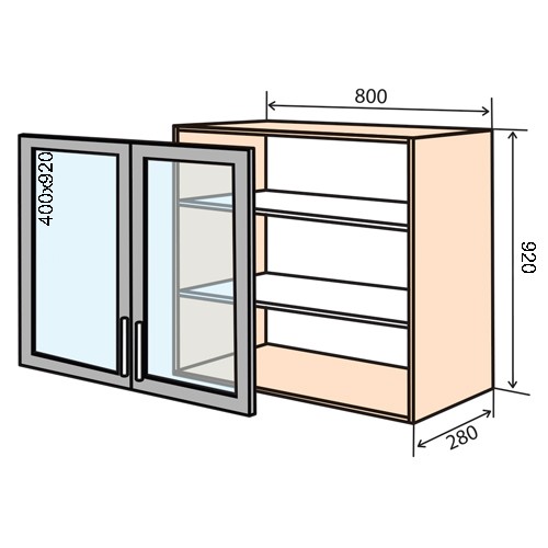 Стандартні варіанти кольору кухонного фасаду вітрина "Модена" (на вибір). Металевий профіль + скло сатин, фасад МДФ фарбований + скло сатин.