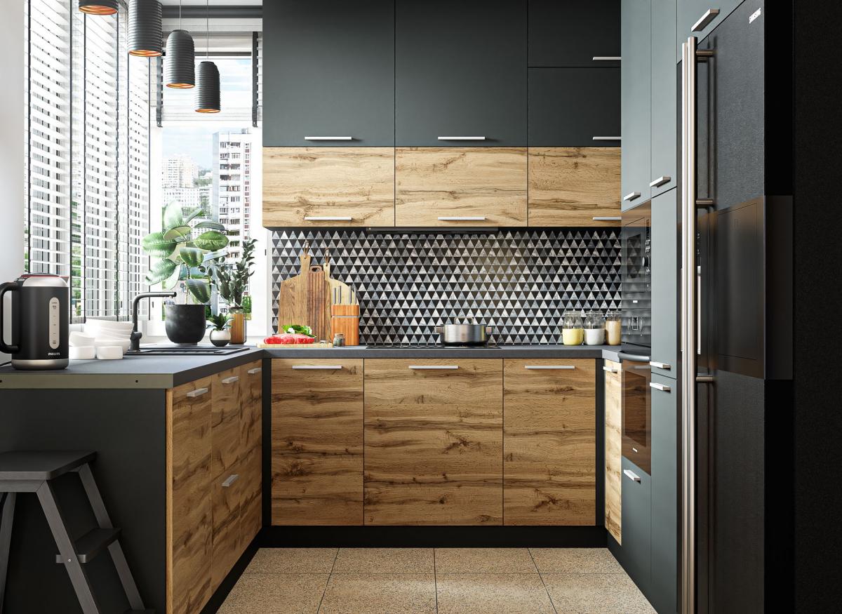Родос” – лаконічна та сучасна кухня, що органічно поєднує в собі однотонні матові декори з деревоподібною текстурою. Кухні з таким поєднанням – це найбільш популярний на сьогодні варіант оформлення кухонних гарнітурів. Ми відібрали 5 трендових кольорів-фактур для комбінації кухонних модулів у Ваші дизайнерські рішення. Поєднуючи між собою світлі та темні фасади, Ви отримуєте цікаві та не ординарні контрастні рішення. Водночас можливо поєднати тільки світлі, або тільки темні фасади між собою, граючи на грі фактур однотонного та деревоподібного фасаду – отримаємо стриманий і водночас оригінальний вигляд кухні.