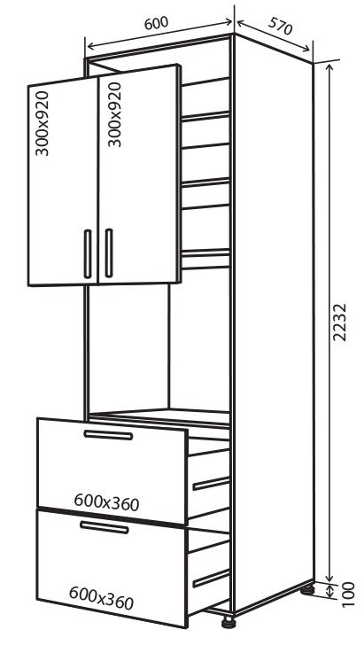 Глибина верхніх ящиків – 300 мм Глибина нижніх ящиків – 500 мм |