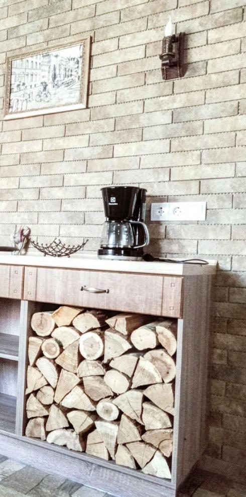 Кухня складається лише з нижніх модулів з деревоподібними фасадами у плівці ПВХ. Ідеальний варіант, як для квартири, так і для будинку.
