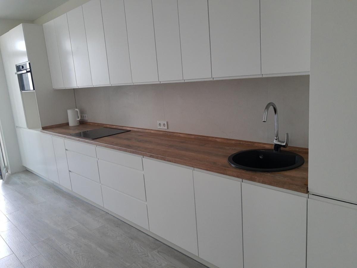 Корпус кухні виготовлено з ламінованого ДСП товщиною 16мм (виробник Swisspan), торці поклеєні кромкою ПВХ товщиною 0,6мм (виробник REHAU Германія). Стільниці 28 та 38мм неводостійкі, виробництва Krono Україна.У нас також можете змінити стільницю та фурнітуру на європейську (Egger, Lux Form, Blum, Heffele), змінити колір фасадів, розміри стандартних моділів, а також ми допоможемо коректно розмістити їх, взявши за основу Ваші побажання.