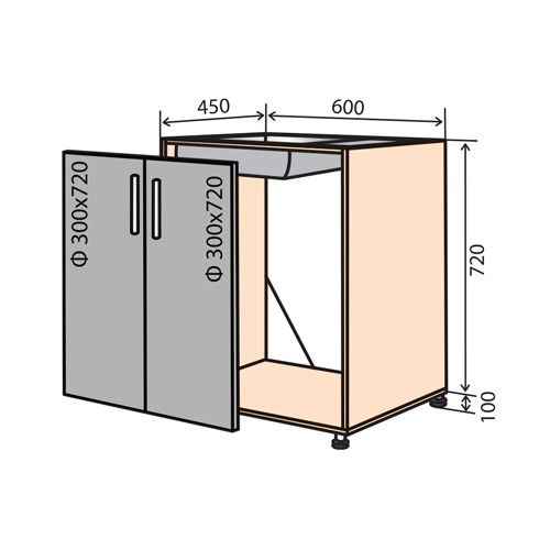 Кухонні модулі виготовлені з ДСП товщиною 16 мм, кромка 0,6 мм REHAU (Німеччина), зібрані на кріплення конфирмат. Внутрішні деталі ДСП, ДВП білого кольору.