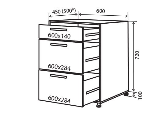 Глибина верхніх ящиків – 280 мм Глибина нижніх ящиків – 450 мм |