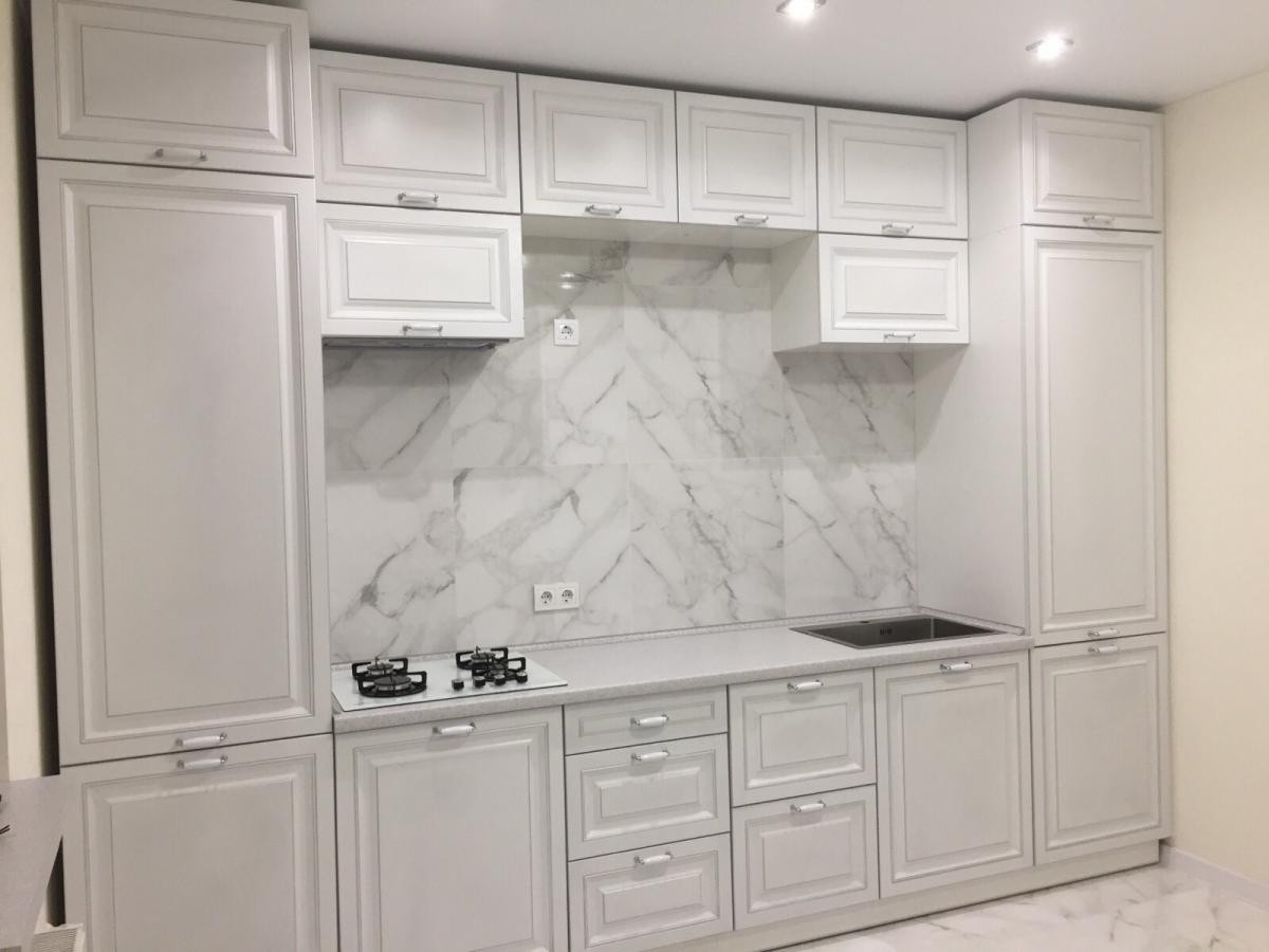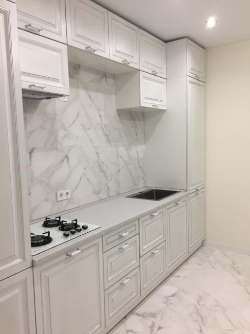 Кухня «Мелані» в іттер”єрі , виконана з використанням фасадів у плівці ПВХ + патина срібло. Завдяки такій світлій кухні,було досягнуто ефекту просторого приміщення у невеличкій кімнаті. Звернуть увагу на деталі у підборі ручок, які делікатно підкреслюють елегантність виробу.