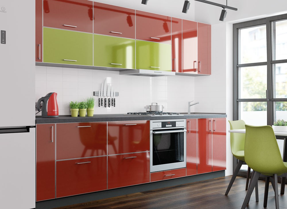 Кухня «Mirror Gloss» - лаконічний глянець в алюмінієвому профілі. Це фасади з ламінованого ДСП товщиною 18 мм з кольоровим глянцевим покриттям з обох сторін (KronoSpan) в алюмінієвому профілі по периметру. 9 кольорів від ніжних до яскравих створять неповторний стиль, який задовольнить смак сучасного покупця, і алюмінієва рамка, додасть додатковий візуального визначення, збільшить надійність і зручність експлуатації кухні.
