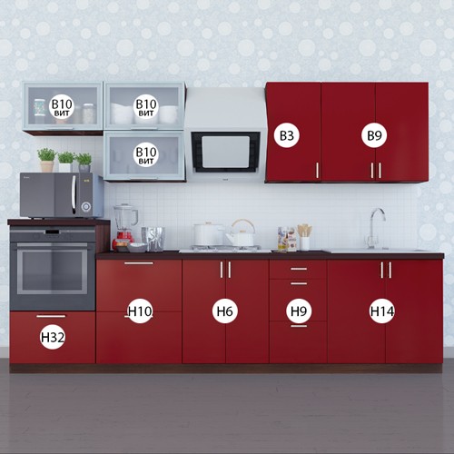 Кухонні фасади, декоровані плівкою ПВХ, вибирають дбайливі господарі, які прагнуть нових рішень, але не бажають витрачати на меблі для кухні значну суму. Бюджетно й естетично — завдяки цим двом перевагам глянцеві плівкові фасади сьогодні домінують на меблевому ринку та стають хітами продажів. Увагу покупців також приваблює вражаюча тональна палітра. Ми пропонуємо фасади 18 кольорів, і в основному це яскраві та активні, кілька з них — з ефектом металік. Великі глянцеві поверхні верхніх модулів вдало комбінуються з вітринами із матового скла — скляні елементи ефектно виглядають та полегшують загальний інтер’єр. Завершує ансамбль релінгова ручка двох розмірів — для стандартних та широких горизонтальних фасадів.