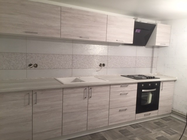 Корпус кухні виготовлено з ламінованого ДСП товщиною 16мм (виробник Swisspan), торці поклеєні кромкою ПВХ товщиною 0,6мм (виробник REHAU Германія). Стільниці 28 та 38мм неводостійкі, виробництва Krono Україна.У нас також можете змінити стільницю та фурнітуру на європейську (Egger, Lux Form, Blum, Heffele), змінити колір фасадів, розміри стандартних моділів, а також ми допоможемо коректно розмістити їх, взявши за основу Ваші побажання.