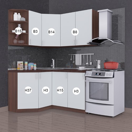 Корпус кухні виготовлено з ламінованого ДСП товщиною 16мм (виробник Swisspan), торці поклеєні кромкою ПВХ товщиною 0,6мм (виробник REHAU Германія). Стільниці 28 та 38мм неводостійкі, виробництва Krono Україна.У нас також можете змінити стільницю та фурнітуру на європейську (Egger, Lux Form, Blum, Heffele), змінити колір фасадів, розміри стандартних моділів, а також ми допоможемо коректно розмістити їх, взявши за основу Ваші побажання.