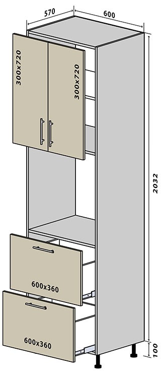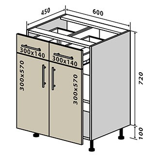 Глибина верхніх ящиків – 300 мм Глибина нижніх ящиків – 500 мм |