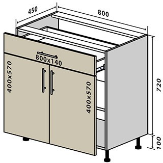 Корпус кухні виготовлено з ламінованого ДСП товщиною 16мм (виробник Swisspan), торці поклеєні кромкою ПВХ товщиною 0,6мм (виробник REHAU Германія). Стільниці 28 та 38мм неводостійкі, виробництва Krono Україна.У нас також можете змінити стільницю та фурнітуру на європейську (Egger, Lux Form, Blum, Heffele), змінити колір фасадів, розміри стандартних моділів, а також ми допоможемо коректно розмістити їх, взявши за основу Ваші побажання.