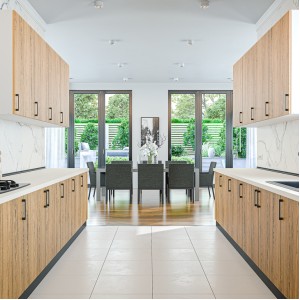 Нова колекція кухонь зі шпонованими фасадами – елегантність та довговічність! Пропонуємо вашій увазі нашу новинку – кухні «Sonata» з шпонованими фасадами! Шпон – це натуральний матеріал, який надає фасадам вишуканого вигляду та забезпечує їхню довговічність. Він ідеально передає текстуру дерева, поєднуючи природну естетику з високою стійкістю до зовнішніх впливів. Кожен фасад ретельно оброблений, щоб підкреслити унікальну фактуру деревини, додаючи інтер’єру розкішний і сучасний вигляд.