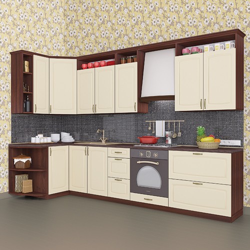 Корпус кухні виготовлено з ламінованого ДСП товщиною 16мм (виробник Swisspan), торці поклеєні кромкою ПВХ товщиною 0,6мм (виробник REHAU Германія). Стільниці 28 та 38мм неводостійкі, виробництва Krono Україна.У нас також можете змінити стільницю та фурнітуру на європейську (Egger, Lux Form, Blum, Heffele), змінити колір фасадів, розміри стандартних моділів, а також ми допоможемо коректно розмістити їх, взявши за основу Ваші побажання.