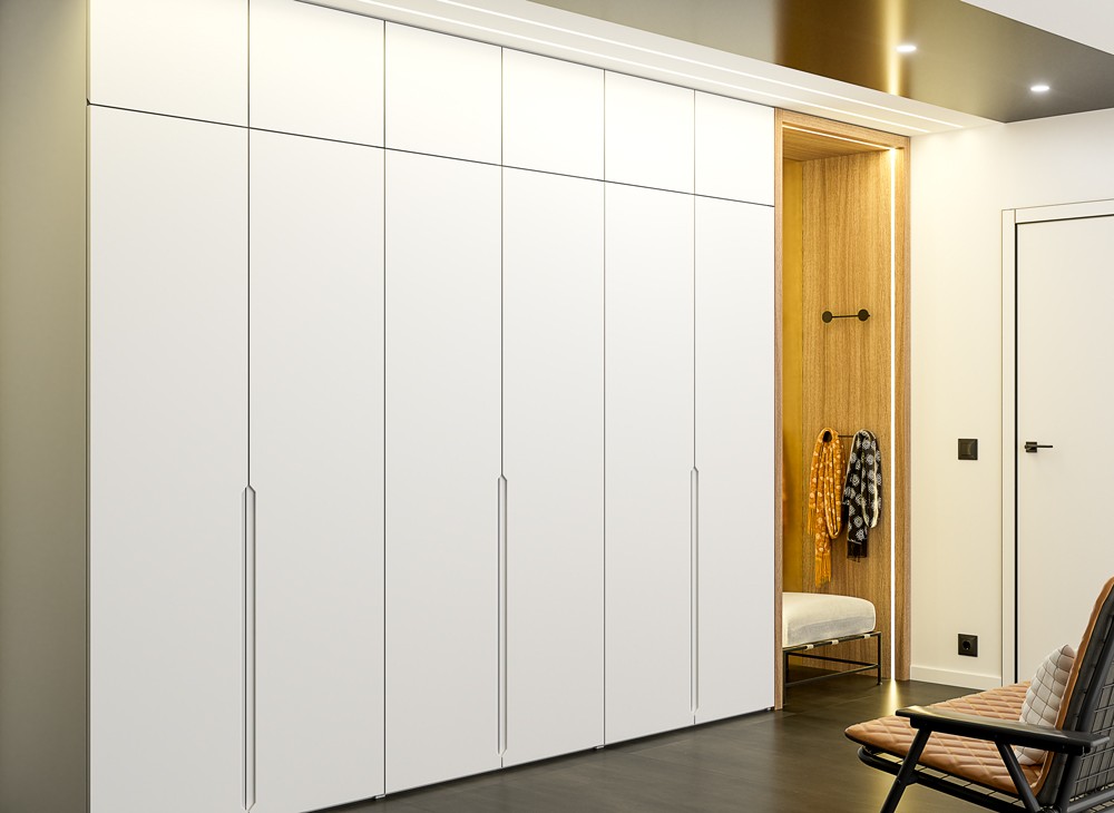 Шафа “Неаполь” – сучасний стиль, що підкреслює мінімалістичний вигляд, завдяки гладким фарбованим фасадам із фрезерованою ручкою. Також може бути доповнена профільними фасадами зі склом (скло графіт в профілі BL /скло сатин у профілі AL) або дзеркалами.