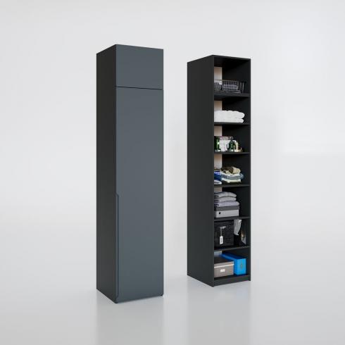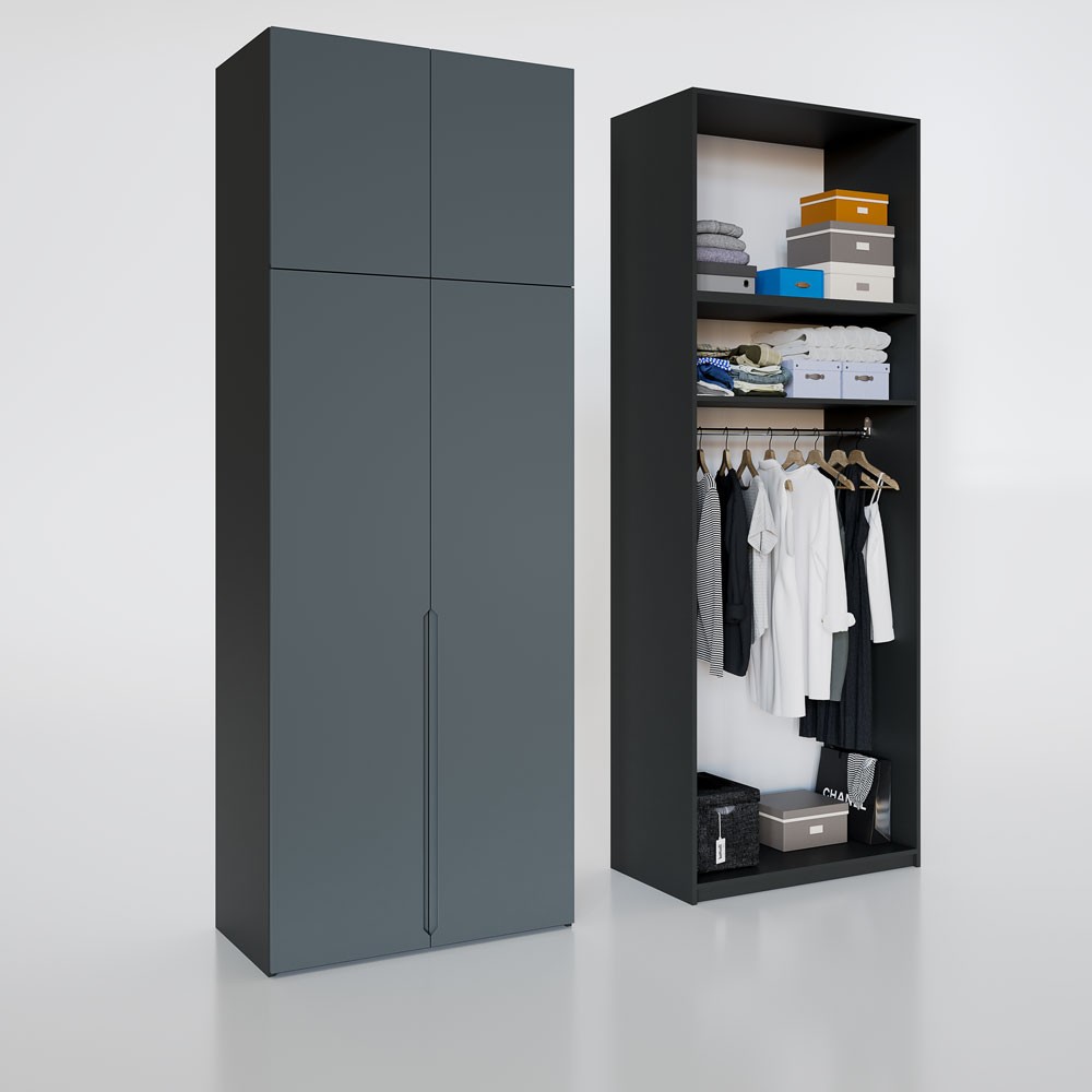 Шафа “Неаполь” – сучасний стиль, що підкреслює мінімалістичний вигляд, завдяки гладким фарбованим фасадам із фрезерованою ручкою. Також може бути доповнена профільними фасадами зі склом (скло графіт в профілі BL /скло сатин у профілі AL) або дзеркалами.