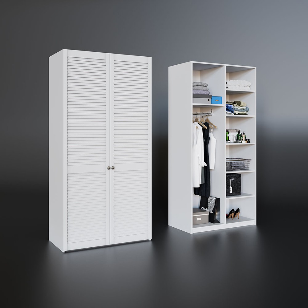 Розпашна шафа Техас з жалюзійними фасадами стане прикрасою будь-якого інтер’єру. Фасади Техас виготовлені з натурального дерева і мають два кольори на вибір – білий або антрацит. Горизонтальні планки не тільки роблять інтер’єр цікавішим, але й забезпечують вентиляцію. Шафа Техас підійде до різних стилів дизайну, додавши елегантності кожному з них. Ви можете обрати розміри комплекту за своїм смаком, комбінуючи різні модулі.