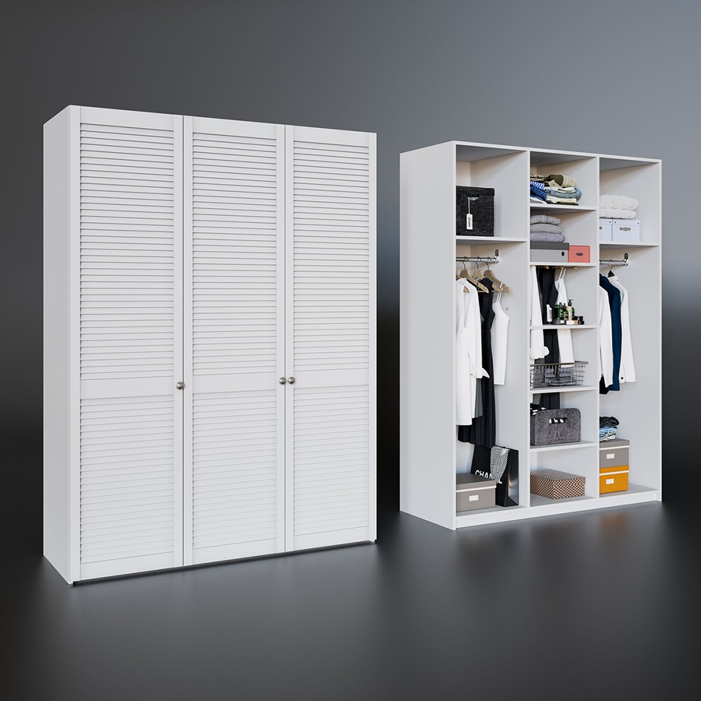 Розпашна шафа Техас з жалюзійними фасадами стане прикрасою будь-якого інтер’єру. Фасади Техас виготовлені з натурального дерева і мають два кольори на вибір – білий або антрацит. Горизонтальні планки не тільки роблять інтер’єр цікавішим, але й забезпечують вентиляцію. Шафа Техас підійде до різних стилів дизайну, додавши елегантності кожному з них. Ви можете обрати розміри комплекту за своїм смаком, комбінуючи різні модулі.