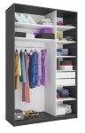 Корпус шафи виготовлений з ДСП товщиною 16 мм. Кромка ПВХ 1мм і 0,6 мм REHAU (Німеччина) Наповнення шафи-купе в білому кольорі (ДСП біле, ДВП біле). Зібраний на кріпленні конфирмат. Шафа-купе глибиною 450 комплектується висувною вішалкою (мікроліфт). Додаткові опції (на вибір): карниз додаткового освітлення, кутове закінчення, висувні ящики, стопора, затиск для щітки розсувної системи.