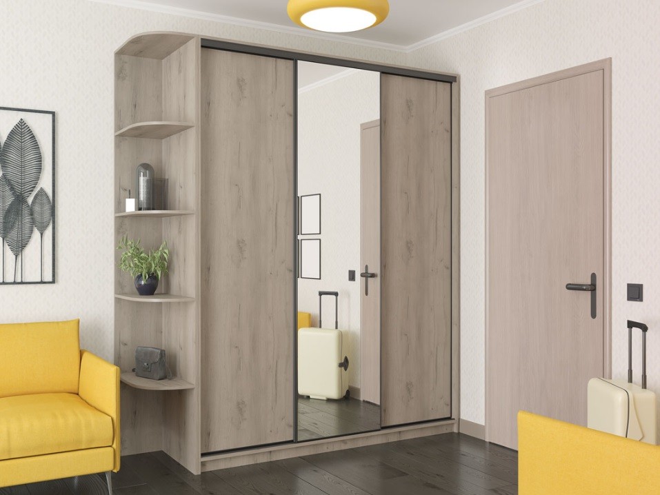 Корпус шафи виготовлений з ДСП товщиною 16 мм. Кромка ПВХ 1мм і 0,6 мм REHAU (Німеччина) Наповнення шафи-купе в білому кольорі (ДСП біле, ДВП біле). Зібраний на кріпленні конфирмат. Шафа-купе глибиною 450 комплектується висувною вішалкою (мікроліфт). Додаткові опції (на вибір): карниз додаткового освітлення, кутове закінчення, висувні ящики, стопора, затиск для щітки розсувної системи.