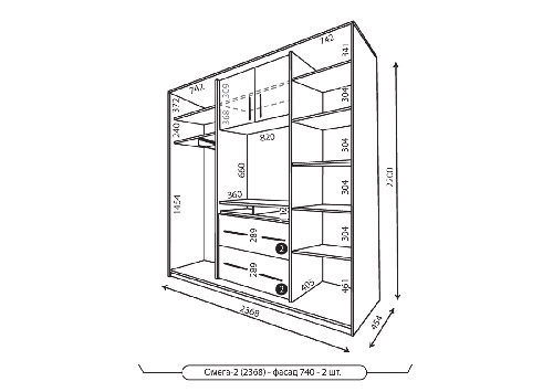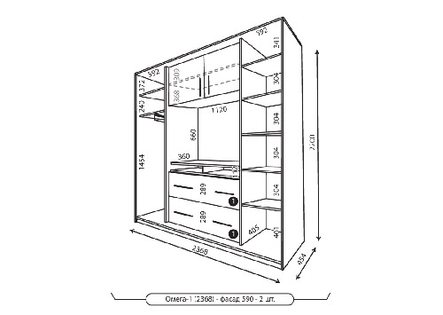 Знято з виробництва! Шафа-купе "Омега-1" 2400Х2200Х450 №001