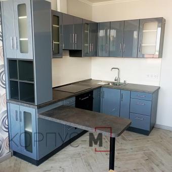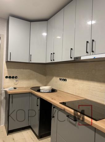 Розпочинаємо його з монтажу фарбованої кухні в глянцевому сірому кольорі.