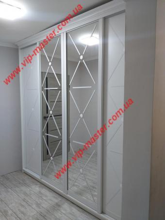 Дозвольте презентувати наш невеличкий проект – шафу-купе на замовлення. Використано систему АДС-браш, бронза світла. Дверне наповнення - дзеркало бронза з художнім матуванням. Корпус шафи - ДСП Еггер 18 мм, слонова кістка. Для зручності оснащений партографом та декоративним куточком.