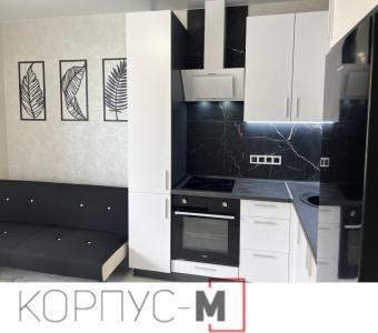 Компактна та стильна кухня! Виконана з використанням фарбованих фасадів та фурнітури марки Блюм. Кухонний острів ідеально доповнює дизайн.