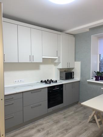 Кухня з фарбованими фасадами та підсвіткою. Матові сірі та білі тони покраски є актуальними, стильними та модними начасі, а локанічні ручки лише підкреслюють завершеність виробу! ️Нічого зайвого... Завжди з думкою про Вас ©️ КорпусМ
