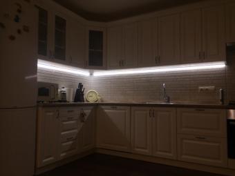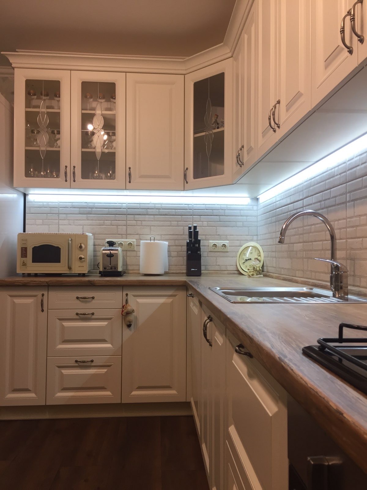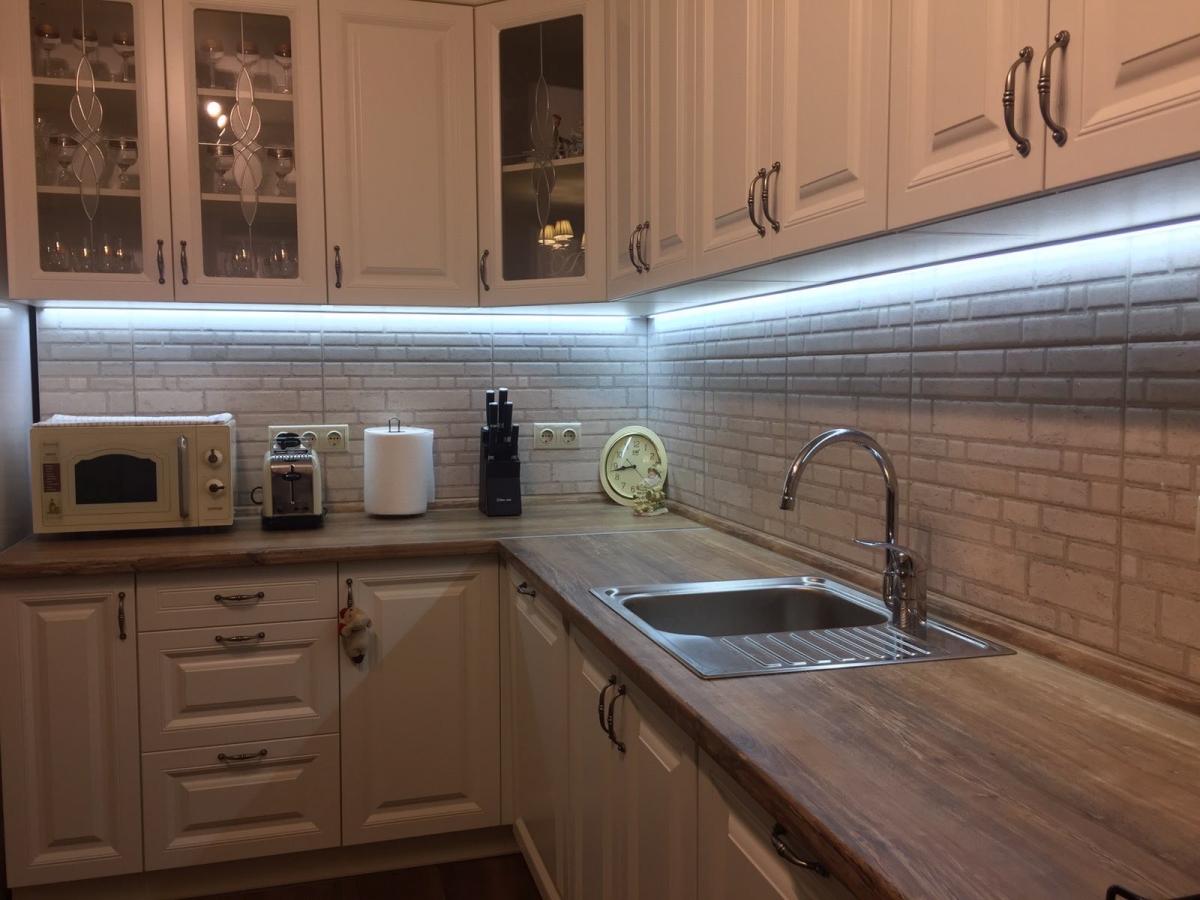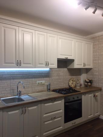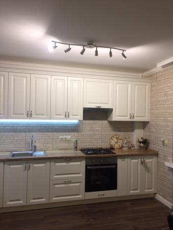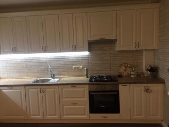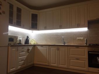 До вашої уваги - фарбована кухня « Мелані». На фото чудово видно різницю кухні з підсвіткою та без у вечірній час!