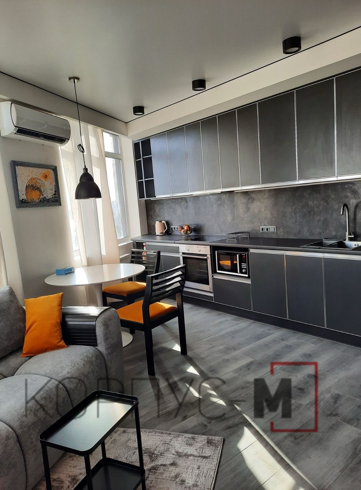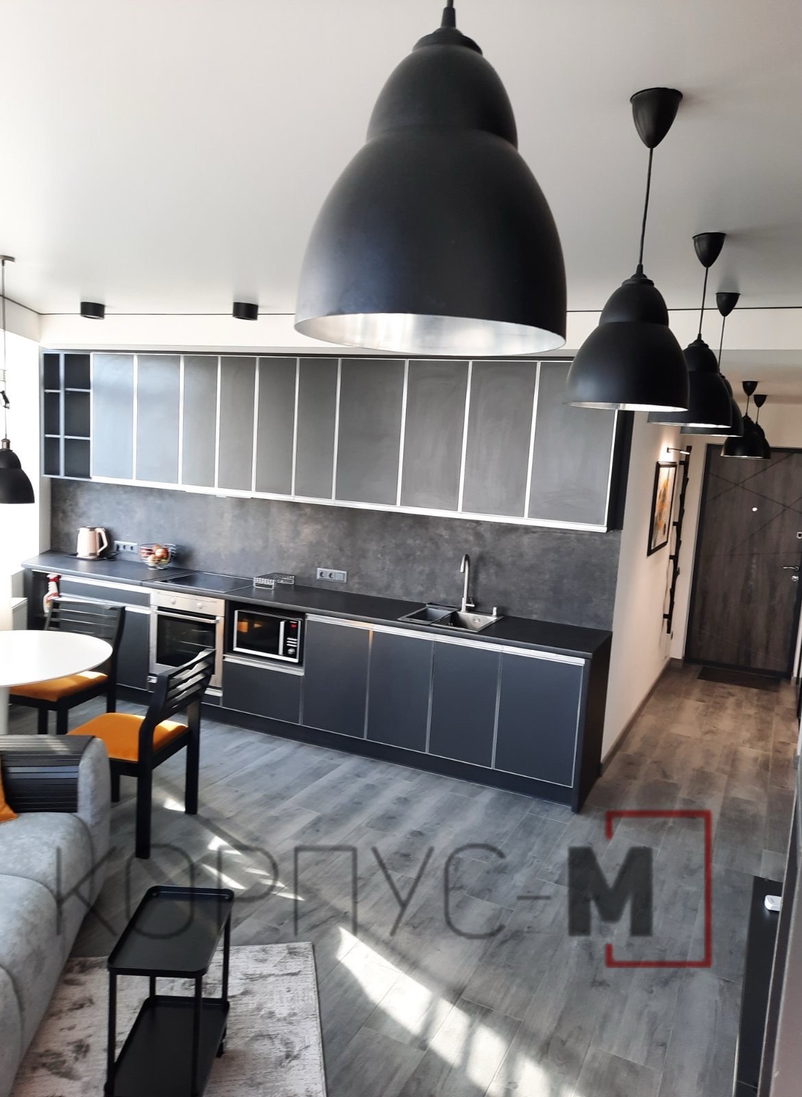 Прийом замовлень на кухню Альта відновлено! Кухня Альта Віп Мастер в інтерʼєрі. Фасади Антрацит в алюмінієвому профілі, стільниця Кераміка чорна.