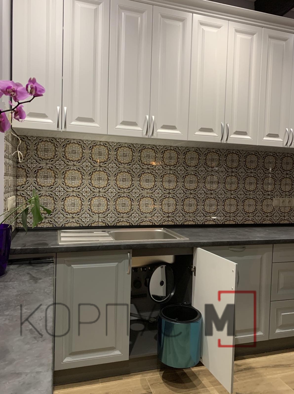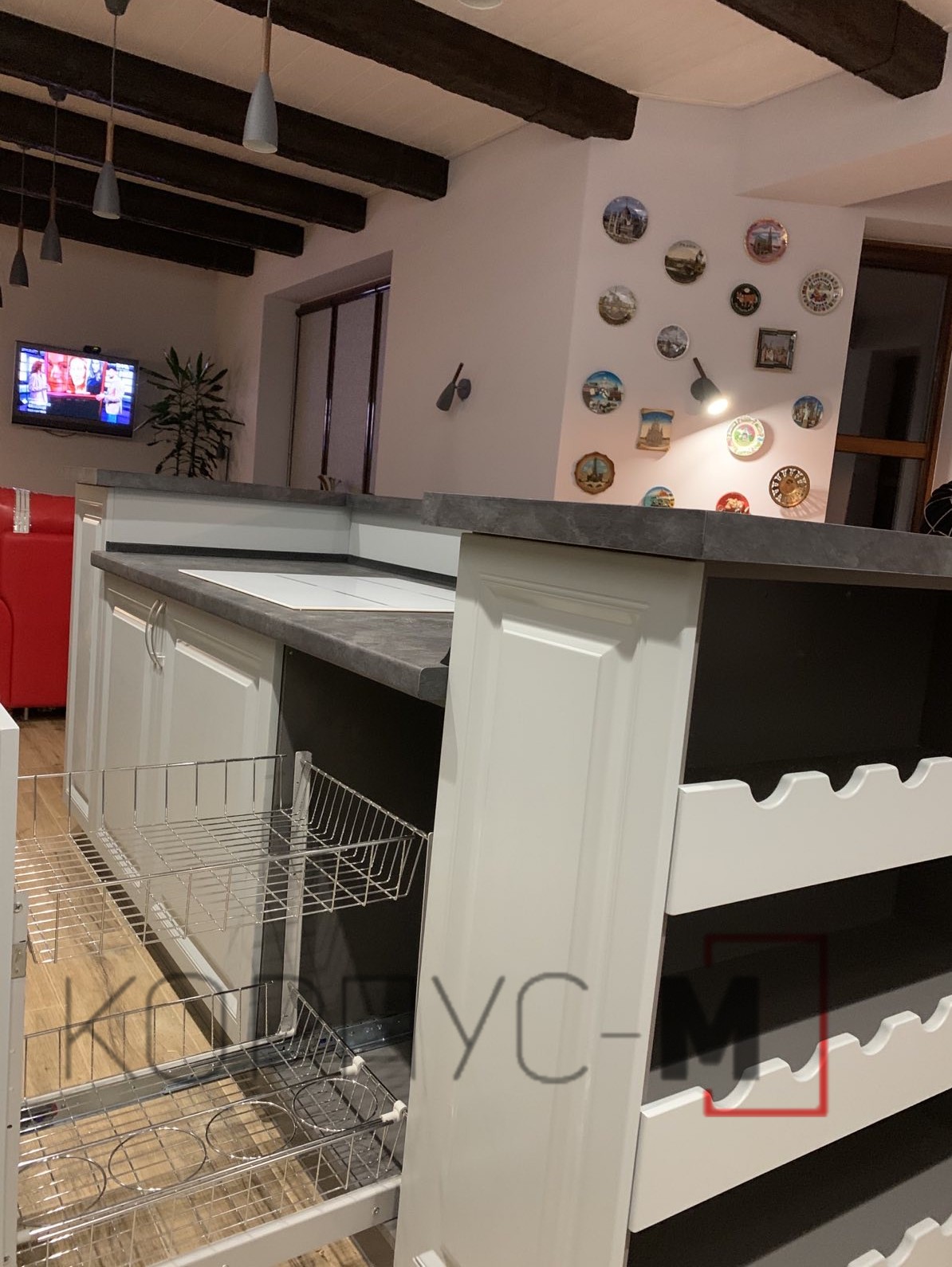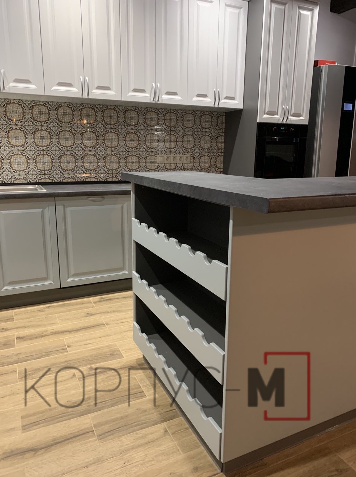 Кухня «Мелані», фарбовані фасади. Стільницю «Селена» виробництва Люксформ, використано, як для острова, так і для підвіконня. Завдяки цьому виріб гармонійно поєднується в одну композицію, підкреслює завершеність стилю та збагачує кухню.