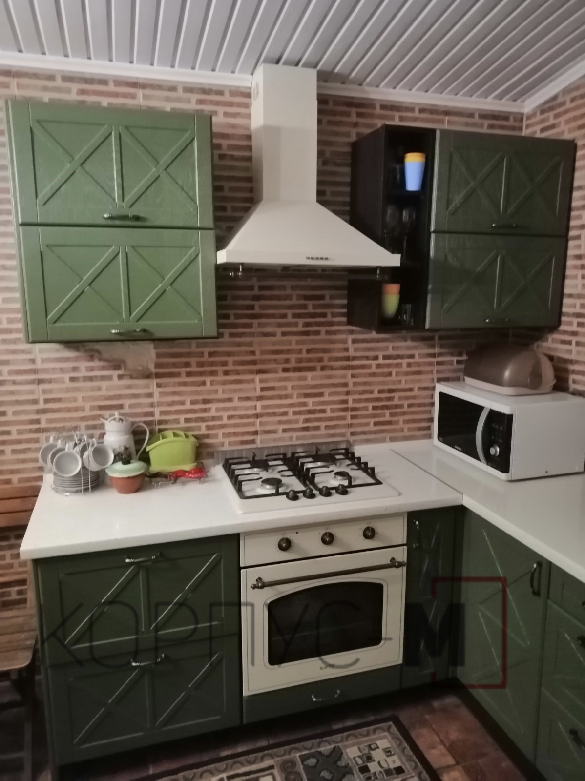 Чудовий вибір для невеликої поверхні. Оливковий колір в поєднанні з золотими деталями додає шляхетності та затишку.