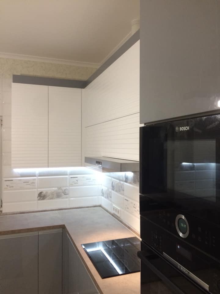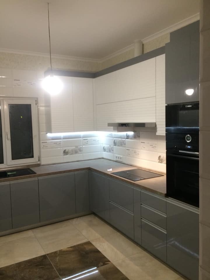 кухня сіра,алюмінієва ручка