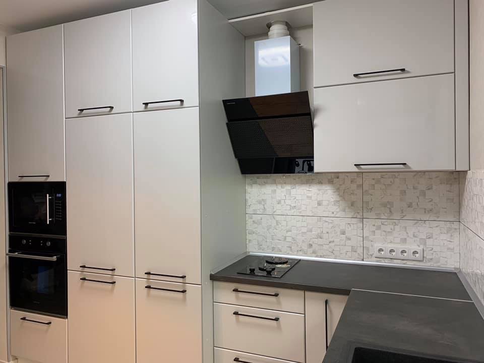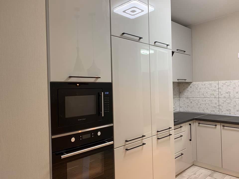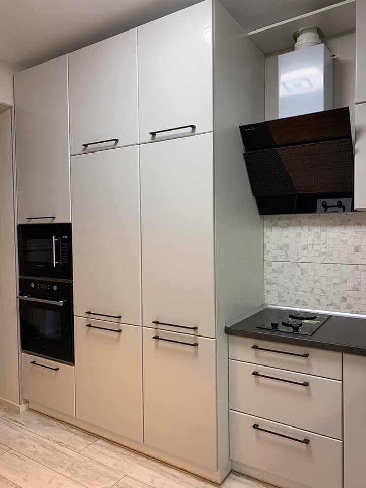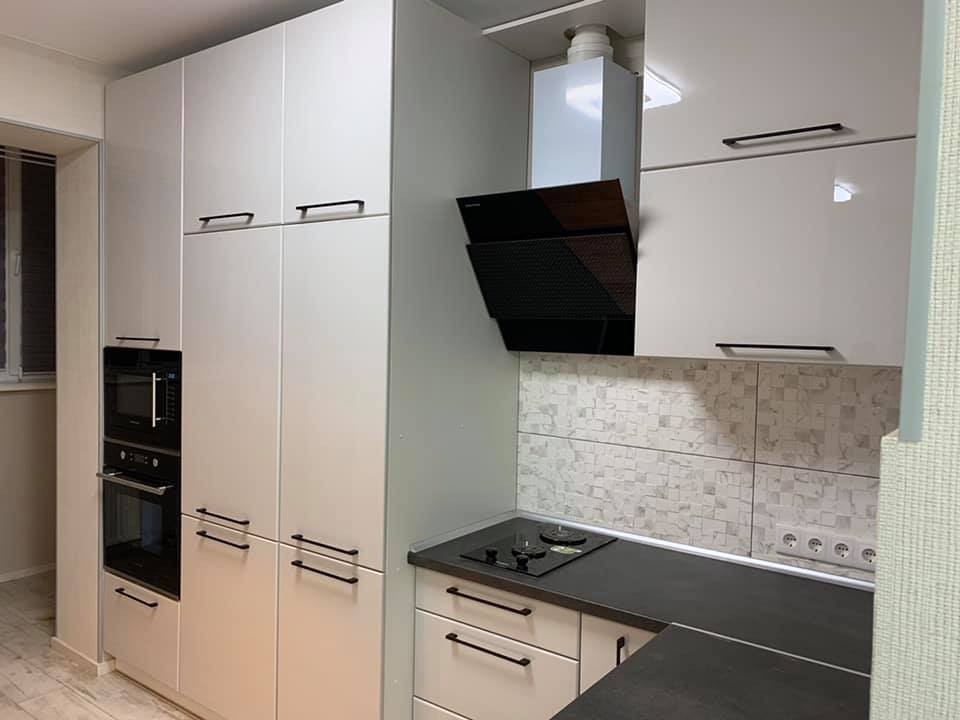 Kухня в стилі лофт з фарбованими, глянцевими фасадами. Кухні в стилі лофт відрізняються своєю лаконічністю та стриманістю, а можливість вбудовання техніки надає більше простору приміщенню та не відволікає від загальної концепції дизайну!