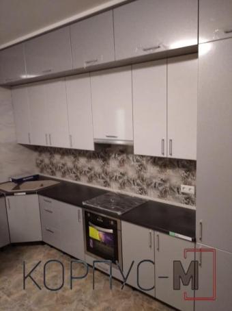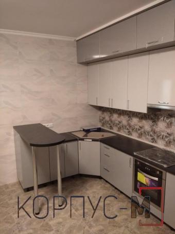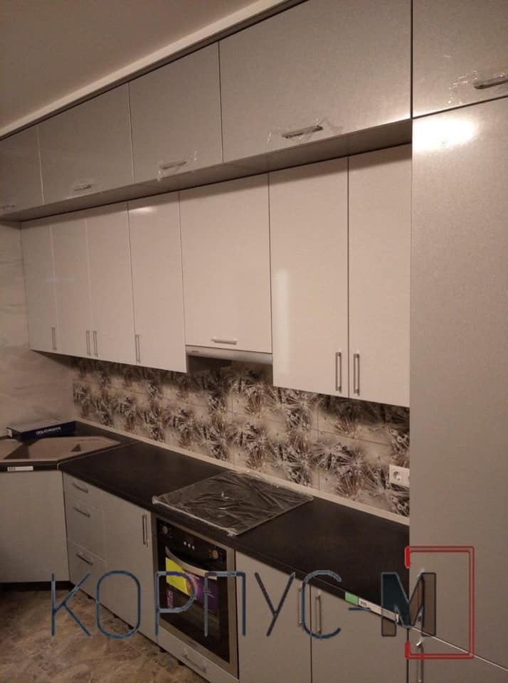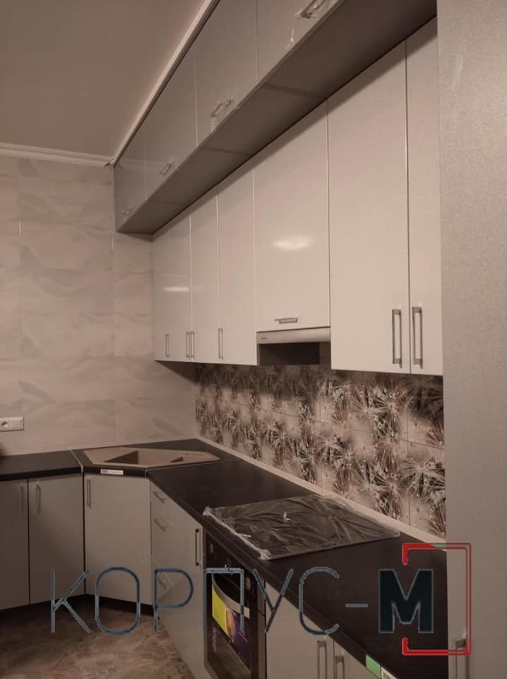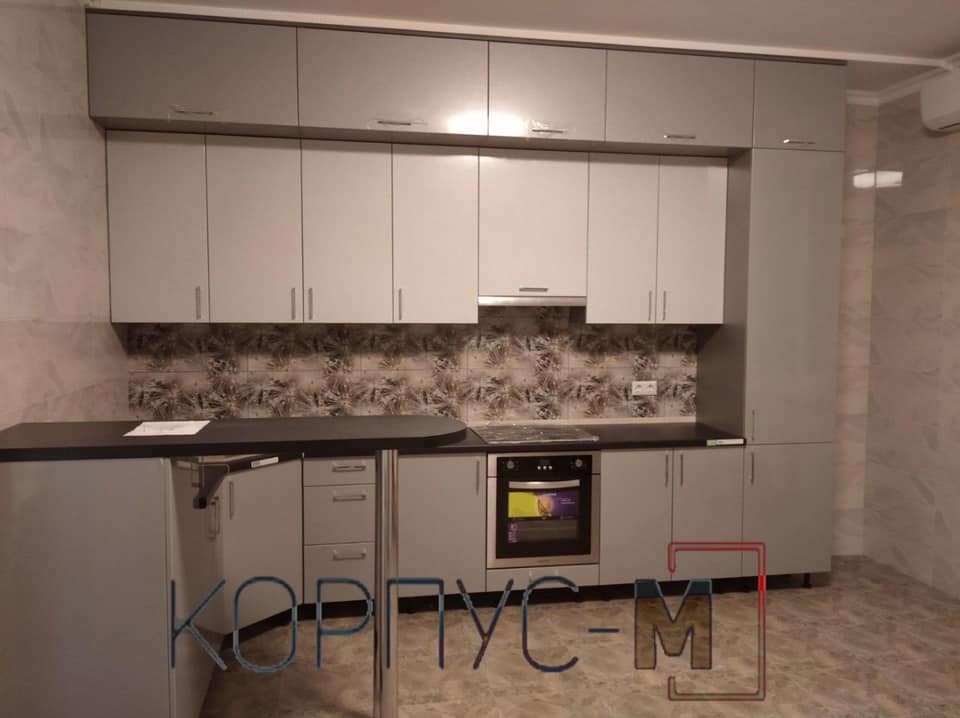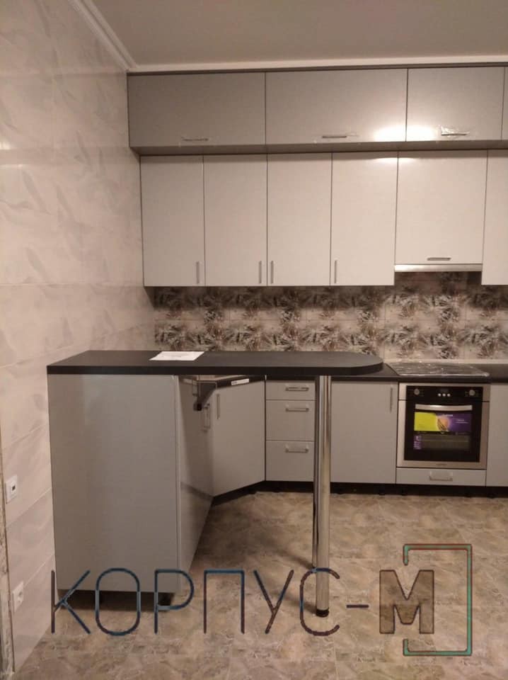 Кухня виконана з глянцевих фасадів у плівці ПВХ. Завдяки вдалому розміщенні робоча зона та раковина ховаються за стильною барною стійкою, а верхні полиці підкреслюють загальну концепцію дизайну! Лаконічність та стриманість в кожній деталі. З думкою про Вас ©️ КорпусМ ❤️