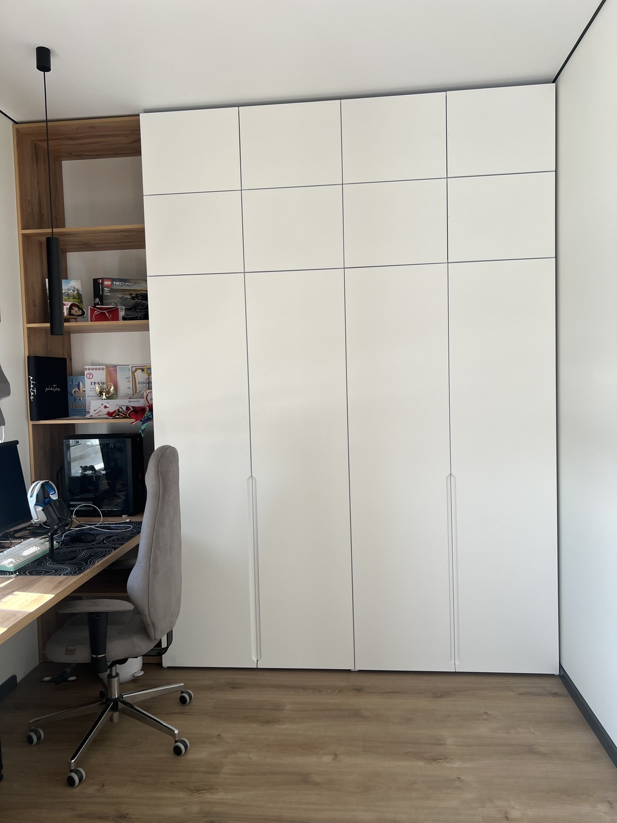 Шафа Неаполь, в поєднанні з робочою зоною, створює приємний затишок, що гармонійно розріджує діловий стиль робочого кабінету. Деревоподібний корпус в кольорі Дуб аппалачі досконало поєднується з білими фасадами, а широкий вибір антресолей та різних модулів дозволяють творити власний інтерʼєр, використовуючи кожен сантиметр простору - що вгорі, що поруч.