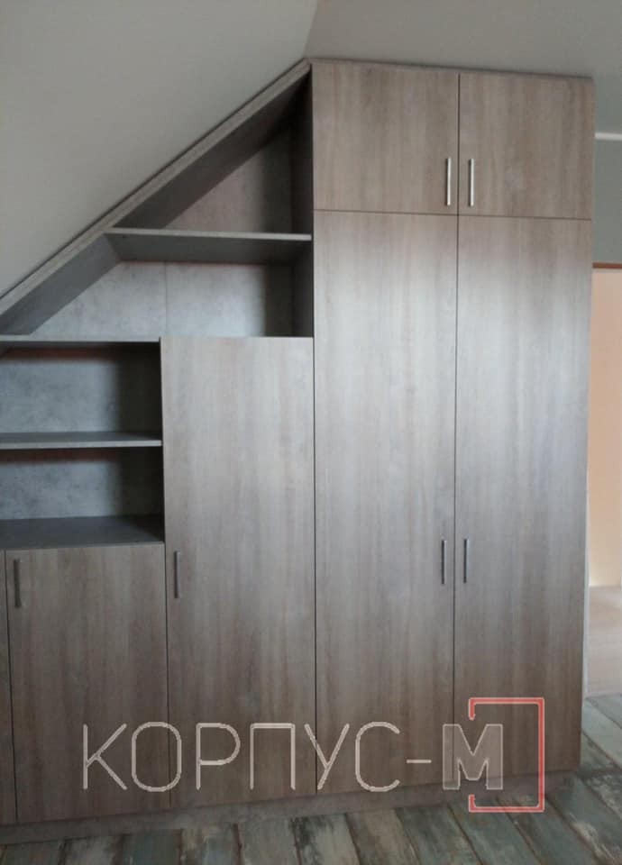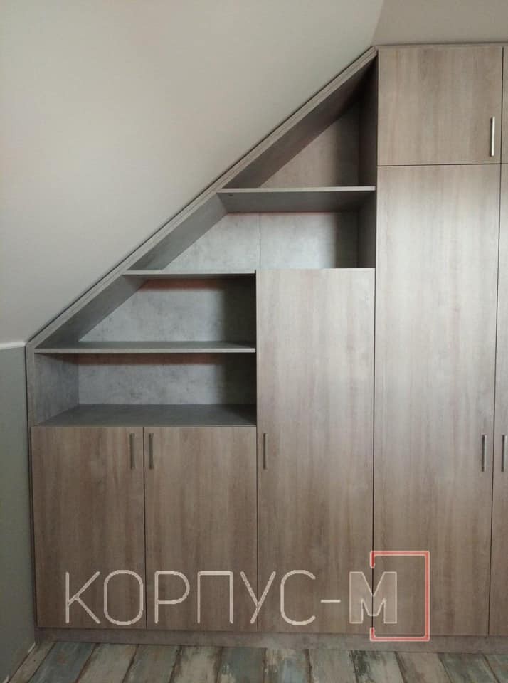 Які меблі варто вибрати для приміщення під дахом? Це можуть були не лише комод або стіл! До Вашої уваги шафа з поличками для книг або декору, яка вдало та гармонійно розмістилась в куточку зі скошеними стінами. Корпус ДСП Egger "Бетон Чикаго світло-сірий", фасад ДСП Kronospan "Дуб Клабхаус сірий ". Зручність, практичність та економія місця в приміщенні! З думкою про Вас ©️ КорпусМ ❤️
