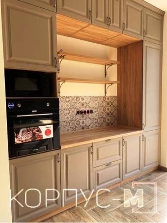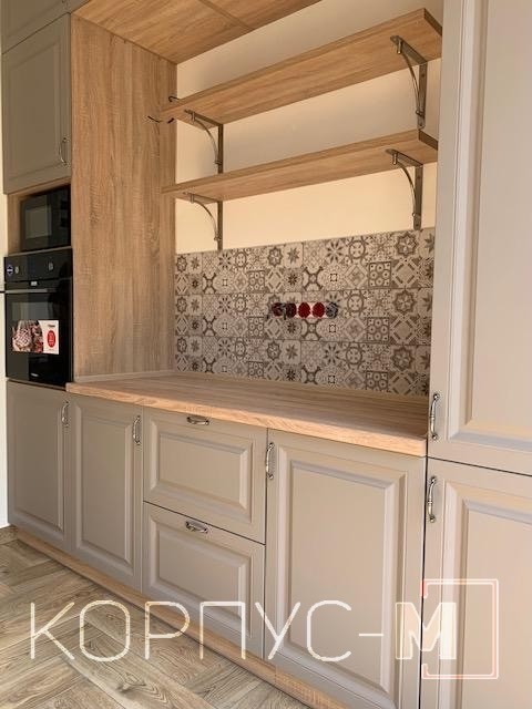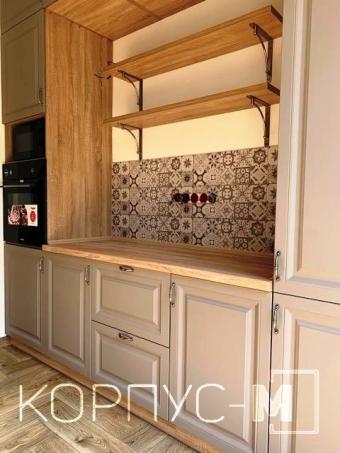 Сьогодні презентуємо кухню Мелані. Фасад - плівка ПВХ, колір стільниці та корпусу - Сонома світла, полички гармонійно прикрашають інтер’єр, завершуючи композицію.